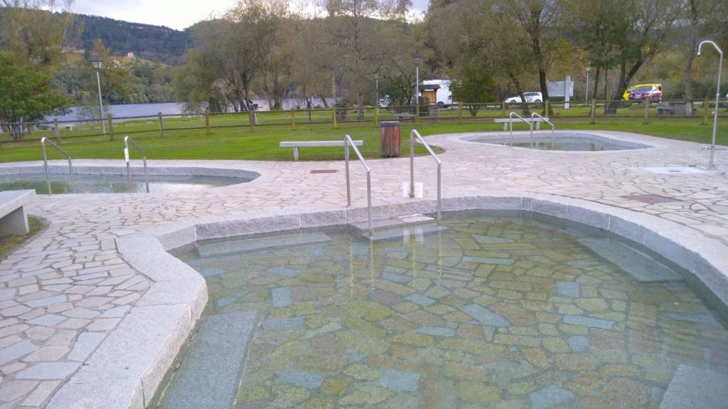 Neulich war Ariadne auf dem Wohnmobilstellplatz Área de Barbantes (Anschrift: Lugar Barbantes 6, 32450) in der Provinz Ourense in Galizien. Wir stehen im November 24 direkt am Rio Mino, gleich neben dem Termal de Barbantes. Das sind drei Becken in einer sehr sauberen Anlage, die wir als Kneipp-Becken beschreiben würden. Das Wasser ist nicht warm, wie es eine Therme vermuten lassen würde, aber es ist blitzsauber, allerdings riecht es ein wenig nach Schwefel. Deshalb gibt es neben den Becken auch eine Außendusche.