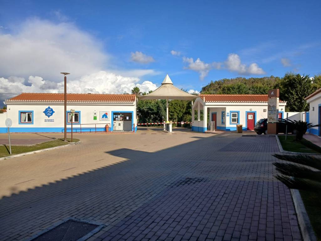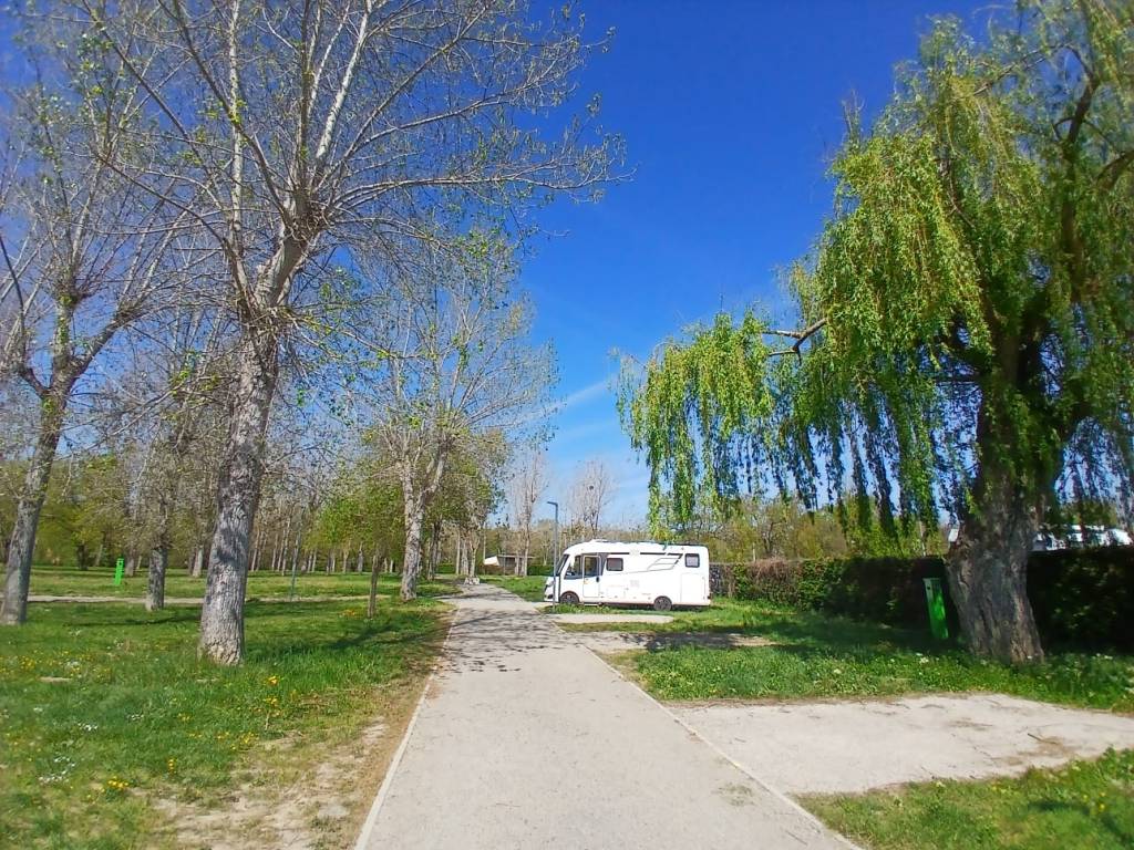 Der eigentliche Stellplatz liegt etwas weiter vorne in einem kleinen Wäldchen. Schilder fehlen allerdings. Und jetzt im November ist das aber egal, weil der Andrang nicht so groß ist. Wir hatten zu Dritt gut Platz.Außerdem gibt es öffentliche, saubere, Toiletten. Gleich neben den Becken ist eine kleine Bar mit ziemlich großem Biergarten.