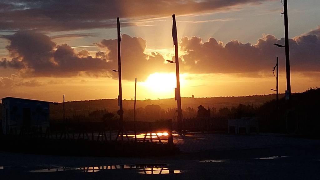 Vom Platz aus kommt man nach ca. 200 m und leichtem Anstieg zu den imposanten Klippen. Etliche Bänke laden zum Verweilen ein. Unten in der Stadt gibt es auch zwei Sandstrände und die Altstadt soll auch sehr schön sein. Das schauen wir uns das nächste mal an. Grad regnet’s zu sehr.