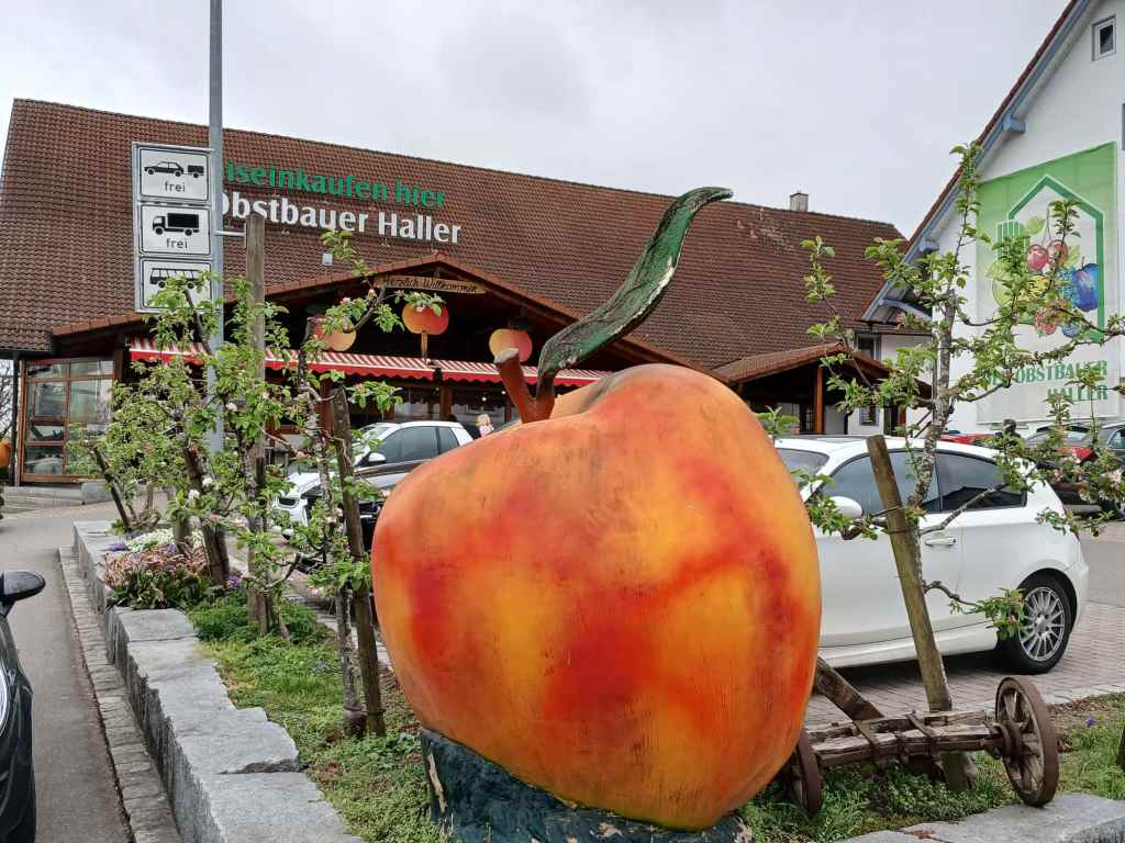 Wie jedesmal, wenn wir hierher kommen, fahren wir vorher noch zum Obsthandel Haller in der Nähe, wo wir wieder Äpfel und anderes einladen. Bisher waren wir mit der Qualität und dem Preis immer zufrieden.