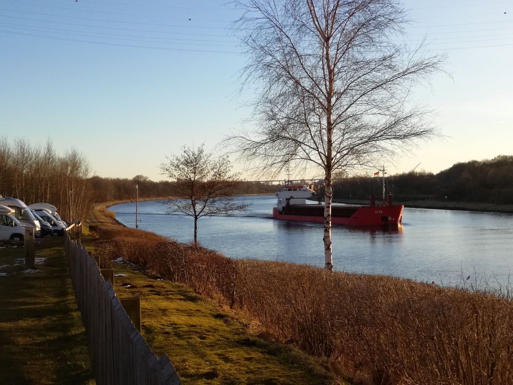 Ein schöner Spaziergang mit einigen interessanten Momenten und viel Geschichte. Wir erfahren einiges über den Kanal, dessen Einweihung und die geplante Zukunft. 1887 wurde der Bau mit der Grundsteinlegung durch Kaiser Wilhelm I. begonnen und schon 1895 konnte der fast 100 Kilometer lange Kanal zunächst mit einfachen Doppelschleusen in Brunsbüttel und Holtenau durch Kaiser Wilhelm II. eröffnet werden. Da könnten sich moderne Bauten in Berlin und Stuttgart einiges abschauen. Bis 1948 hieß der Kanal noch Kaiser-Wilhelm-Kanal. Heute gibt es am Nord-Ostsee-Kanal einige tolle Stellplätze.