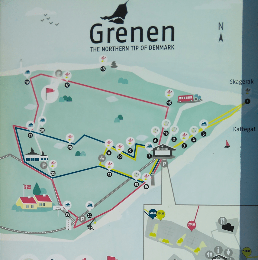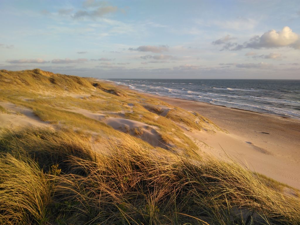 Hier bei Skagen treffen Nord-und Ostsee aufeinander. Das linke Bein steht in der Nordsee, das rechte Bein in der Ostsee. Etliche lange und leere Strände laden zum Wandern ein.