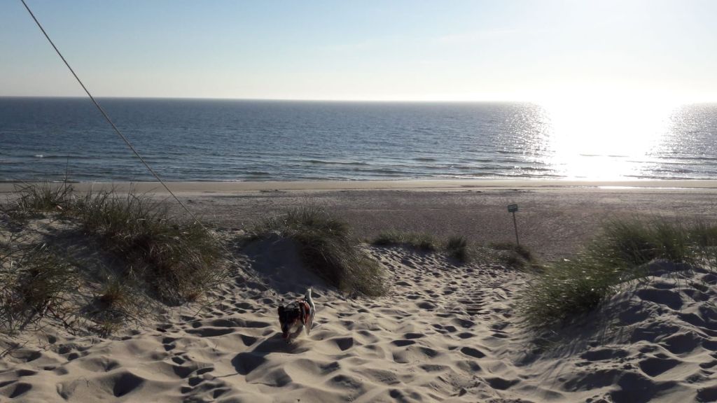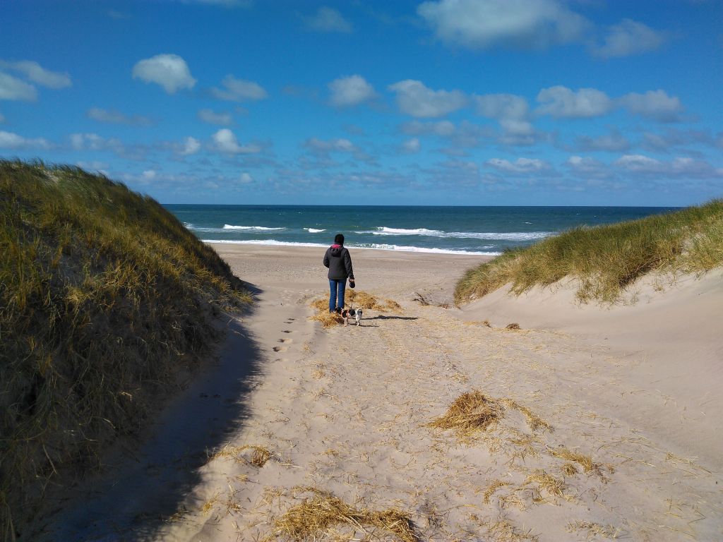 Aber erstmal geht unsere Reise weiter zum 700-Seelen-Dorf Saltum und damit in die Nähe von nordeuropas größtem Wollmarkt. Wir brechen ganz früh auf und können nicht anders. Die Fahrt unterbrechen wir immer wieder für einen Kurzspaziergang, weil die Westküsten-Strecke so herrlich nah an den Dünen entlang führt. Unsere Paula ist natürlich an der Leine und Hundesackerl hamma auch dabei.