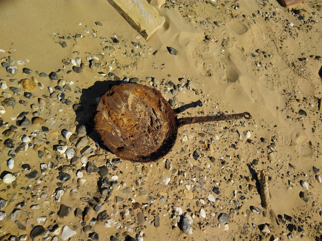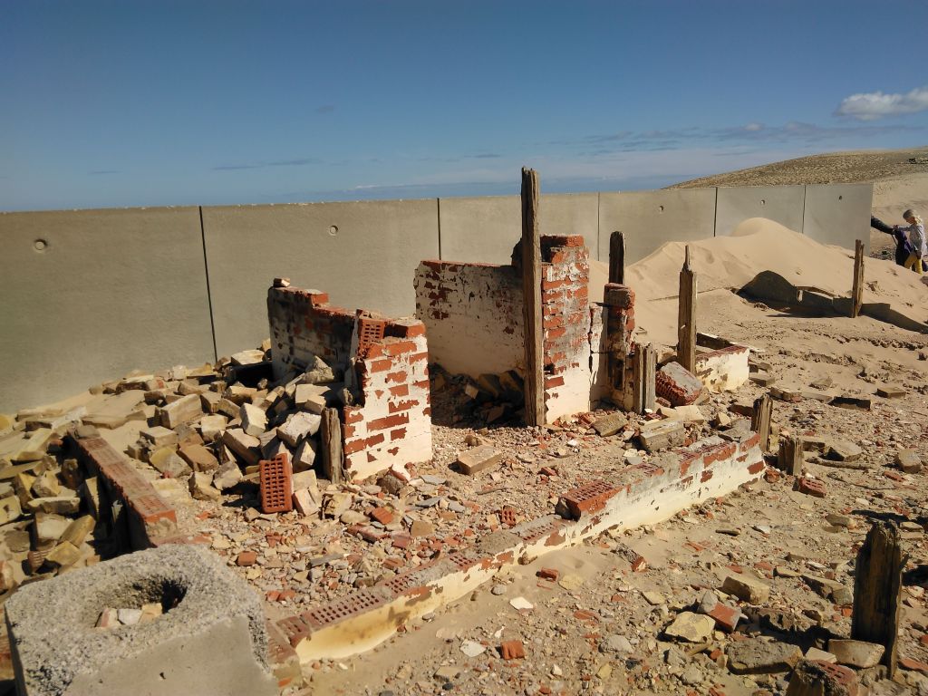 Ursprünglich war der Leuchtturm etwa 200 m vom Meer entfernt. Aber inzwischen hatte die Düne den Turm und vor allem die Nebengebäude samt Brunnen und Garten überlaufen. Nur noch lose Ziegelsteine und Küchenuntensilien zeugen davon, daß hier mal wer wohnte.
