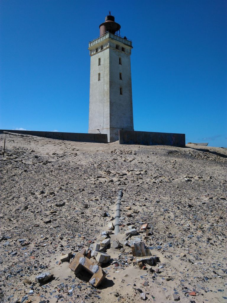 Die Fahrt bringt uns erstmal in die Gegend von dem über 120 Jahre alten Leuchturm Rubjerg Knude Fyr und die inzwischen recht hohe Wanderdüne. Man hat dort extrig einen Ausflugparkpatz errichtet. Campen darf man hier nicht. Vom Parkplatz aus führt ein Fußweg vorbei an Schafen und Ziegen zum Leuchtturm.