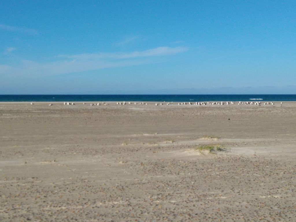 Wieder hat es tolles Wetter und 12 Grad, vielleicht sogar 13. Am Strand waren außer uns nur 4 Leute, ein toter Seehund und etliche Möwen.
