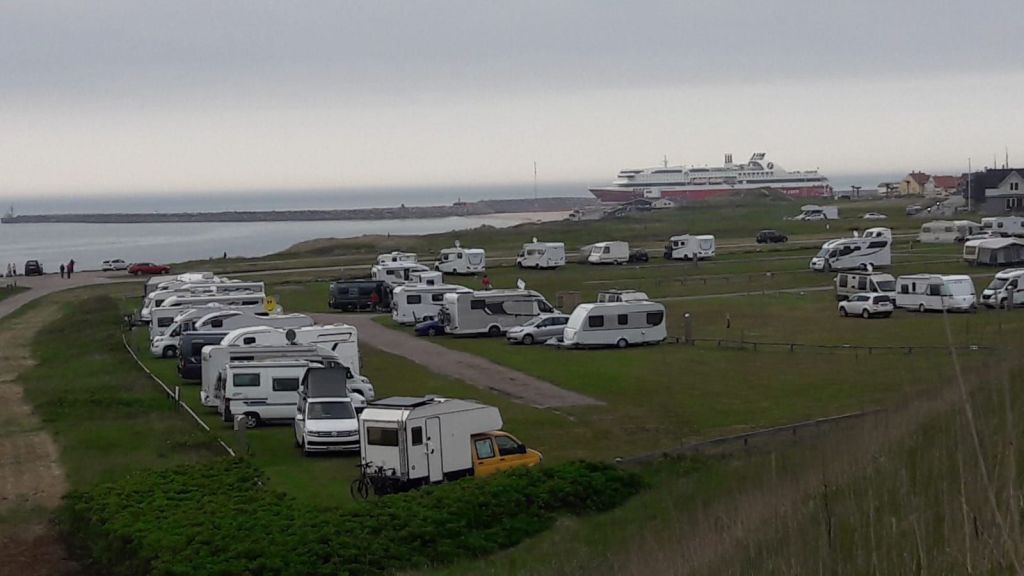 Die fahrt nach Hirthals ist schnell vorbei. Dann sind wir auch schon beim DK Hirtshals Camping (Kystvejen 6, 9850 Hirtshals) und checken erstmal ein. Wieder bekommen wir einen Platz ganz vorne oberhalb der Steilküste mit herrlichem Blick aufs Meer.