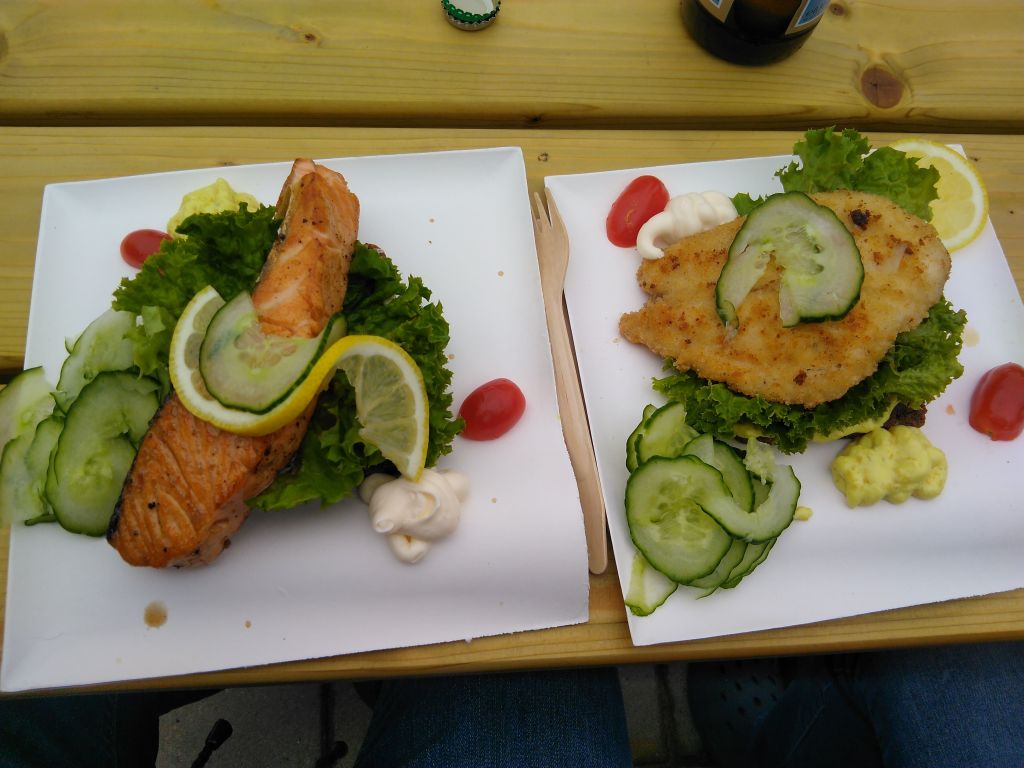 Die heutige Zahl ist „Drei“, denn wir bleiben in Hirthals noch eine 3. Nacht und haben im LOTTO doch tatsächlich einen 3er. Deutschland bleibt auch nach dem zweiten Halbfinale des Eurovision Song-Contest in Stockholm nicht 3.-Letzter, sondern schafft es mit „Ghost“ und 11 Punkten auf den letzten Platz. Gewonnen hat die Ukraine mit „1944“, was uns angesichts der Bunker wieder zum Nachdenken bringt. Abends wird es wieder so schön, daß wir uns draußen am Kiosk einen Fisch gönnen. Eine Scholle und ein gebratener Lachs schmecken uns gut.