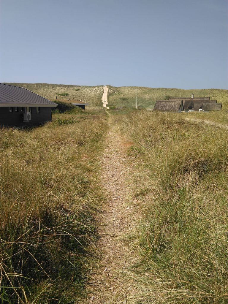Mit dem Radl geht es auf einem interessanten Heide-Weg nach Hvide Sande. Beinah hätte ich sogar eine Kreuzotter überradelt, die wohl unser Daherradeln nicht bemerkt und sich in die Sonne gelegt hatte. Aber dann ist sie doch erschrocken und gleich vom Weg runter wieder in die Heide reingeschlängelt.