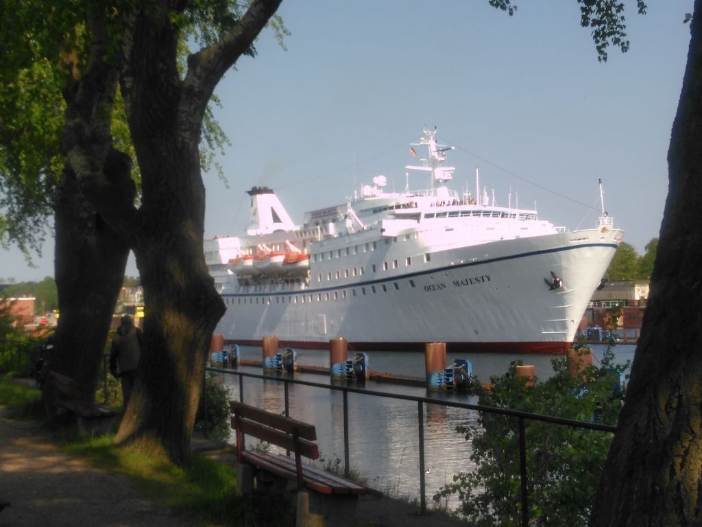 Dann kommt auch noch ein schönes weißes älteres Passagierschiff, die „Ocean Majesty“
