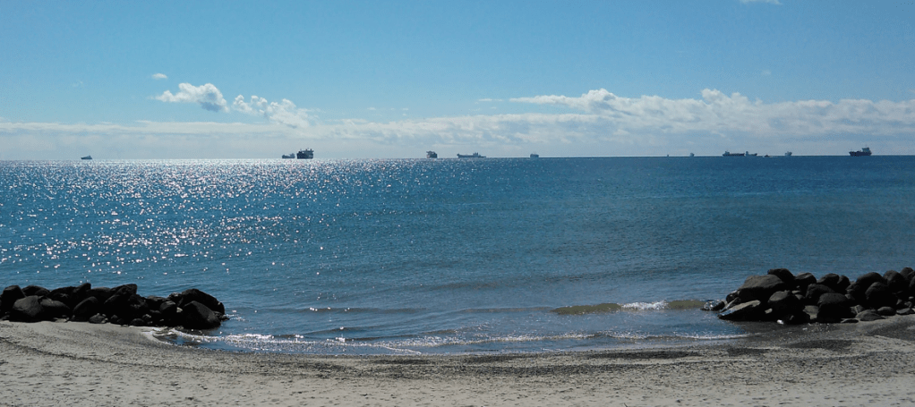 Draußen auf dem Meer sehen wir etliche Schiffe, die auf die Erlaubnis warten, in den Hafen fahren zu dürfen. Am Abend holen wir Mölkky raus und spielen zusammen mit den Lübecker Nachbarn ein paar Runden.