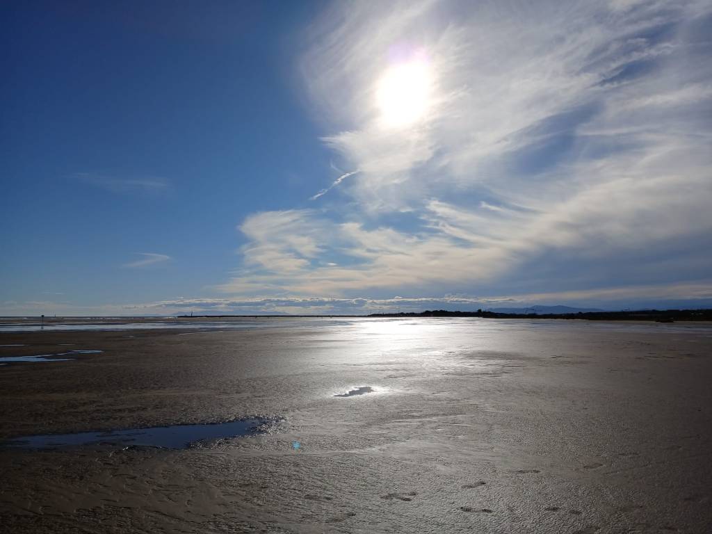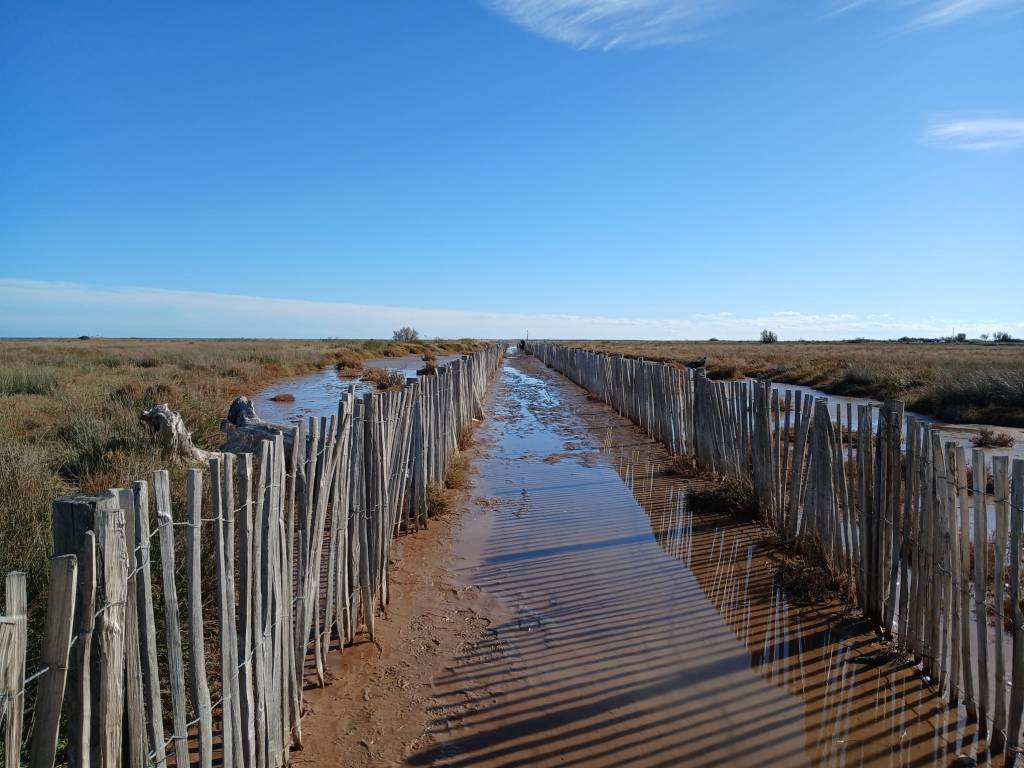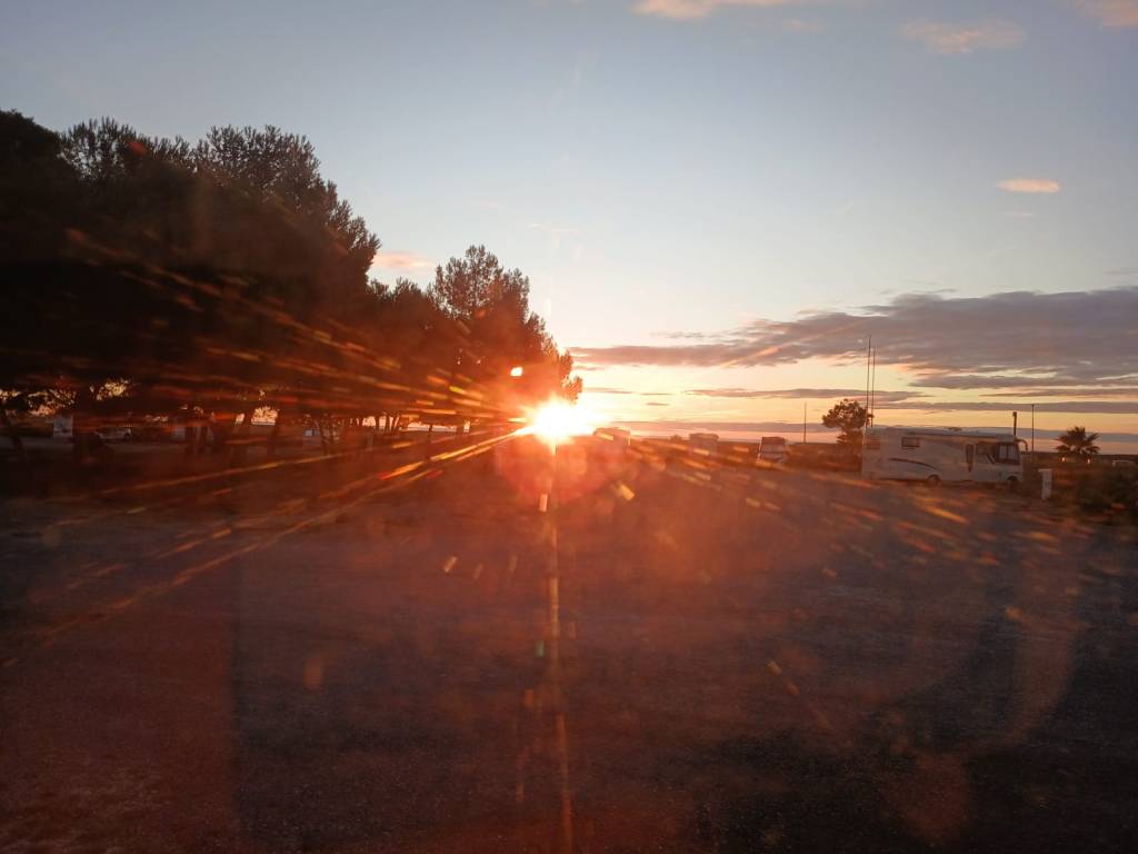 Servus vom Stellplatz Campeone nahe Narbonne bei St. Pierre la Mer. Die Anschrift lautet: Route de Gruissan in 11100 Narbonne Plage. Der Platz liegt 1 m über dem Meer und man kann es auch rauschen hören. Zu Fuß wären es etwa 10 Minuten durch den Nationalpark, aber aktuell steht Wasser aufm Weg wegen der letzten Regenfälle.