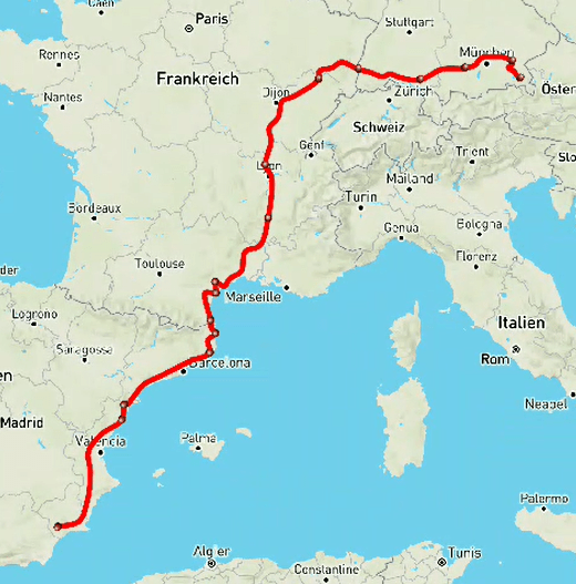 Also beschlossen wir einen großen Sprung nach Süden zu machen und sind auf der AP7 mautfrei in Richtung Spätzle Fritz aufgebrochen.