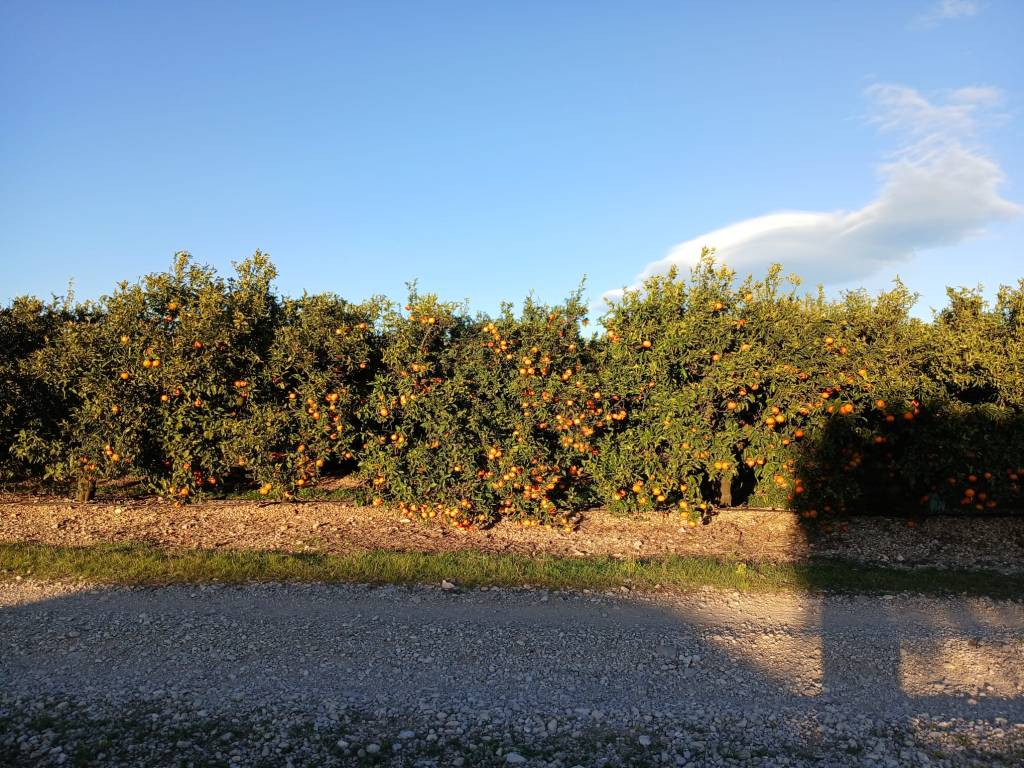b) Also beschlossen wir einen großen Sprung nach Süden zu machen und sind auf der AP7 mautfrei in Richtung Spätzle Fritz aufgebrochen. Um Barcelona herum gab es ein wenig stockenden Verkehr, aber sonst kamen wir gut voran. Und außerdem wurde das Wetter immer besser. Der Himmel wurde mit jedem Kilometer blauer und die Temperatur stieg auf 16 Grad. Und dann tauchten die Orangenplantagen auf.