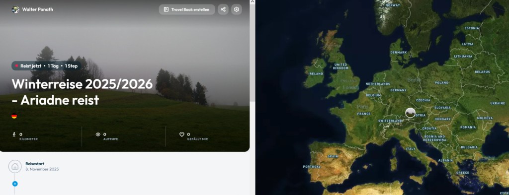 Wenn Euch die Stellplätze der letzten Reise interessieren, dann könnt Ihr hier reinschauen: https://ariadnereist.blog/2024/11/19/von-buhl-aus-in-den-warmen-winter/ Wir waren „mautfrei“ von November bis Mitte April unterwegs und wollen auch diesmal wieder mit der Option „mautfrei“ von Google Maps vorwärts kommen.