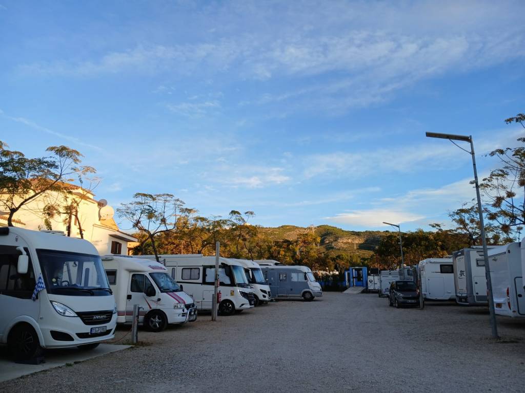 Servus vom Stellplatz „Autocaravaning Park Roses“ in 17480 Roses, Carrer del Port de Reig 65 im Nordosten Spaniens an der Costa Brava. Der Platz kostet 16 Euro/24 Stunden. Wer Strom will, der zahlt nochmal 4 Euro. Es gibt zwei V/E Plätze, Toiletten (auch barrierefrei) und Spülplätze. Bezahlt wird am Automaten. Die Rezeption ist besetzt von 09:00 bis 21:00 Uhr. Gegen Mittag war der Platz etwa halb gefüllt. Zum Abend hin wurden dann aber 60 der insgesamt 69 Plätze belegt.
