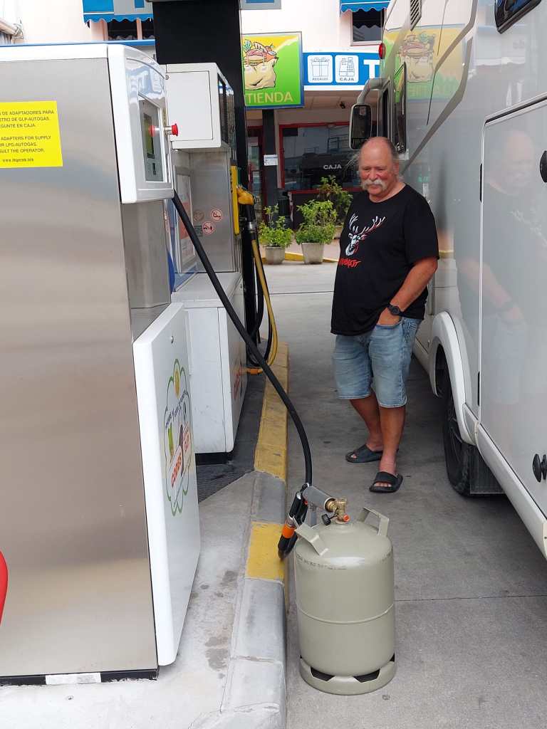 Also sind wir sogleich nach San Roque aufgebrochen zur TankstelleCOMBUSTIBLES DEL ESTRECHO SL und tatsächlich konnten wir da unsere deutsche Flasche füllen lassen. Eine Repsol Propano bekamen wir aber nicht. Das gelang erst in Jerez de la Frontera.