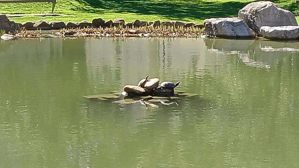 Gleich neben dem Platz beginnt ein Spazierweg in die Stadt. Gegenüber des Platzes gibt es einen Weiher, der schnell umrundet ist.
