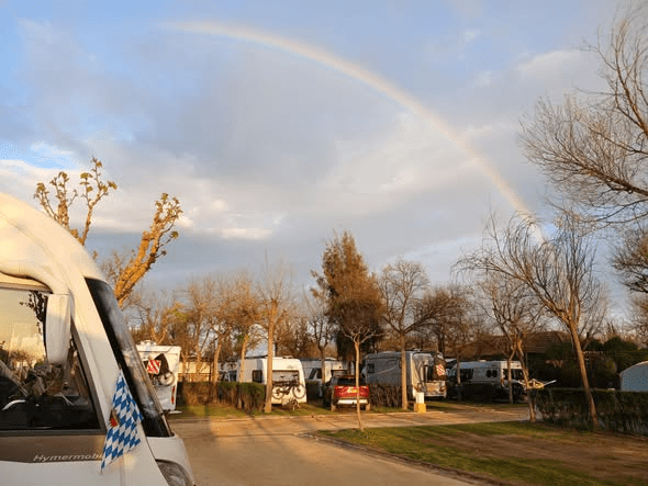 Mit dem Wetter hatten wir insgesamt Glück. Am Abend zog ein Gewitter direkt am Campingplatz vorbei. Wir blieben fast trocken und sahen am Ende sogar einen Regenbogen.