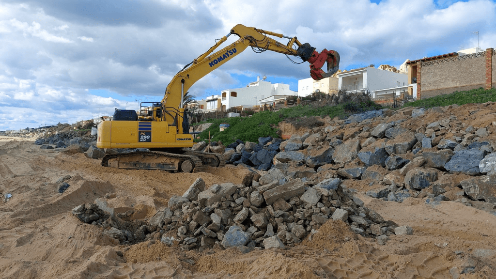 Aktuell werden mit schwerem Gerät wieder neue Felsen aufgeschichtet.