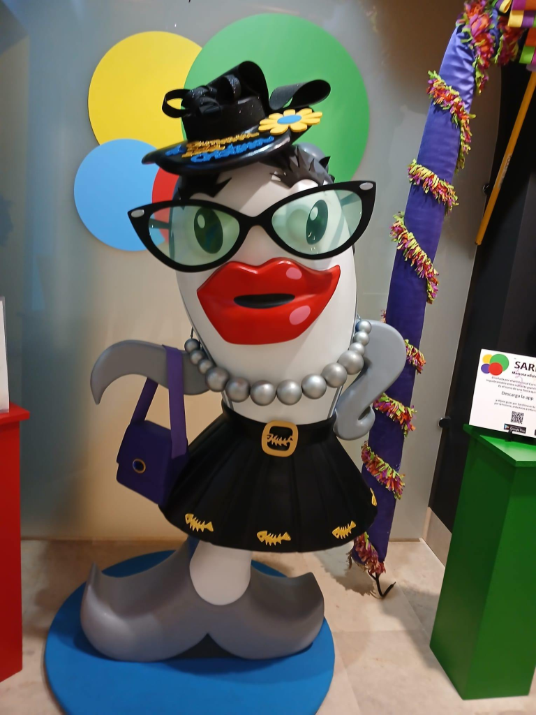 Wenn Ihr nach Isla Cristina kommt, dann sucht in der Calle de Francisco die Tourist-Info auf. In den gleichen Gebeäude ist auch das Museum de Carnaval und das sollte Ihr unbedingt anschauen. Im Erdgeschoß könnt Ihr einen interessanten Film mit deutschen Untertiteln über Isla Cristina sehen. Im Obergeschoß läuft ein Film im 4K-Format über die Geschichte des Carnaval. „Sarditina“ ist das Maskottchen für den Karneval auf der Isla Cristina