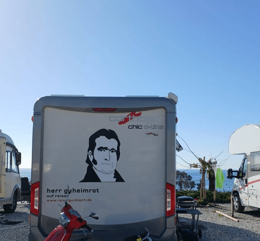 100 Plätze bietet der Stellplatz. Vielleicht 20 – 30 sind hier und ein jeder hält schön Abstand zum nächsten. Trotzdem kommt man natürlich ins Gespräch. Es ist schön ruhig hier. Die Sonne scheint, was will man mehr.