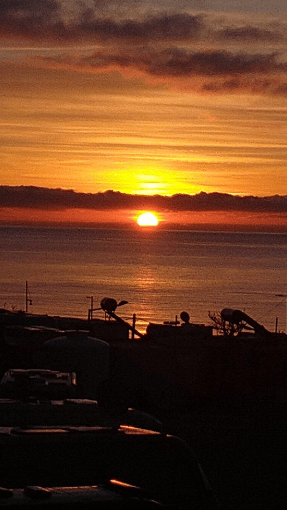 Am Morgen konnten wir dann einen herrlichen Sonnenaufgang einfangen. Der Tag startete mit 11 Grad und ohne Wind. Heute (Montag) ist Markttag vorne in der Nähe des Leuchtturms. Mal schauen, ob wir aus dem Liegestuhl kommen