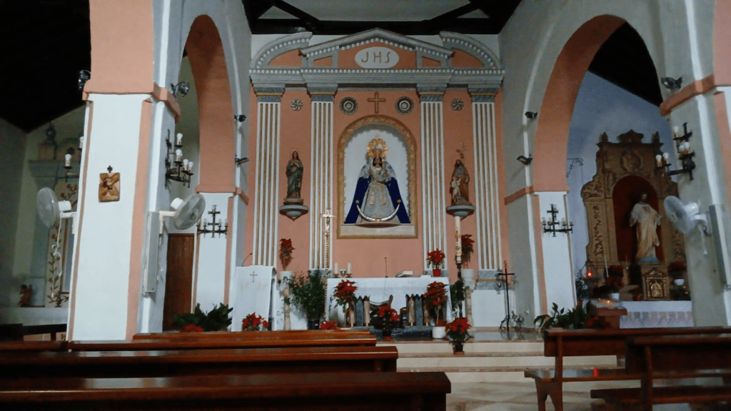 Zurück zum Dorf. Es gab auch hier oben Stierkämpfe. Die Arena ist noch da und kann besucht werden. Es gibt ein großes Auditorium für Konzerte und dergleichen. Überall trifft man auf Kunst. Zwei Einsiedeleien gibt es und natürlich eine Kirche. Überall schmücken Blumen den Ort. Bunte Dachrinnen zieren ein Haus. „Dantschige“ kleine Läden laden zum Bummeln ein. An manchen Orten bieten alte Fotos einen Vergleich mit alten Zeiten, genannt „Una Mirada el pasado“. Wir spazieren gemütlich durch die Gassen und lauschen, was uns Monika, unsere Freundin, zu erzählen weiß. Sie scheint ein wenig in das kleine Bergdorf verliebt zu sein, schwärmt von den kleinen Lokalen, den vielen Geschäft und von der Höflichkeit der Leute hier. Sie führt uns auch in interessante Gassen, die nicht von den offiziellen Fremdenführern angesteuert werden. Bis auf die Felsenkirche besuchen wir die Gotteshäuser, setzen uns kurz für ein stilles Gebet und zünden (elektronische) Kerzen an.