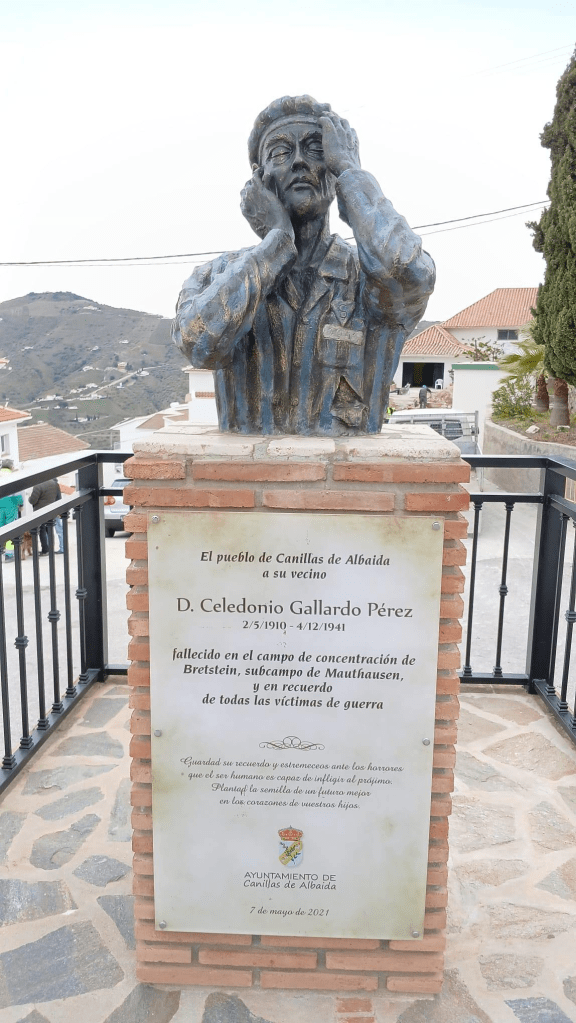 Auf dem Platz steht eine Statue ohne erklärendes Schild. Also haben wir uns durchgefragt und erfahren, daß es sich um die Statue des Senor José Perez Franquelo, allen im Ort bekannt als Pepe El Cohetero (Pepe, der Feuerwerker), der Raketen und Feuerwerkskörper abgefeuert hat. In Spanien ist da ja nicht wie bei uns, wo jeder das Zeug aus dem Supermarkt heimschleppt und vorm Haus abfeuert.