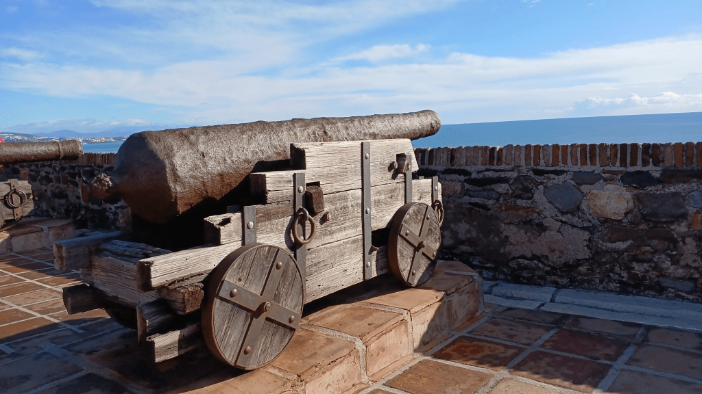 Natürlich sind wir durch den Park die 38 m zur Burg hochgestiegen. Es gibt auch einen barrierefreien Weg. Immer wenn die Burg offen ist, sind auch die öffentlichen Toiletten offen (eigentlich). Der Eintritt ist frei. Informationen kann man sich bei „Matias“ im Office, aus einer Broschüre in Deutsch und natürlich aus dem Internet holen. Die Burg ist ganz schön groß finden wir, obwohl wir sie auch schonmal umrundet haben. Über Treppenstufen kommt man hoch zur Burgmauer und hat einen fabelhaften Ausblick auf die Costa del Sol.