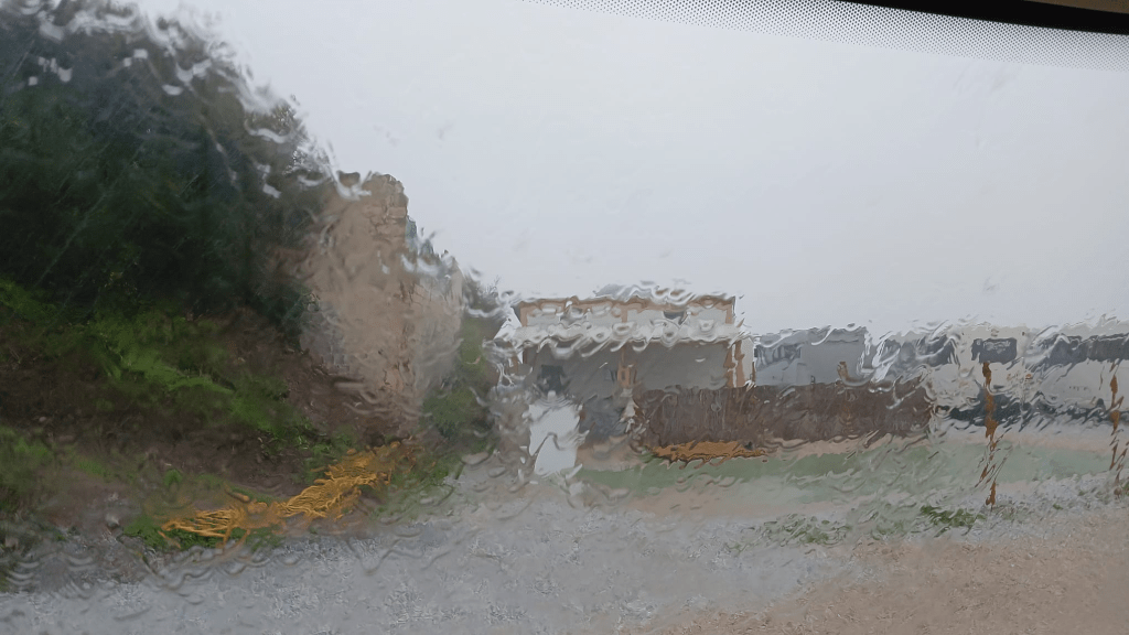 Weiter im Osten scheint es richtig zu schütten. Bei uns kommt immer wieder mal für ein paar Momente die Sonne durch.