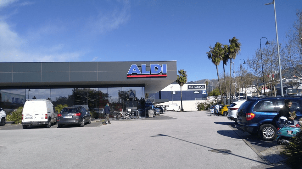 In Fuengirola wollten wir unsere Vorräte wieder auffüllen. Beim Lidl ging das nicht, weil die Zufahrt auf 2,30 m höhenbeschränkt ist. Aber beim Aldi war ein Platz für uns vorhanden.